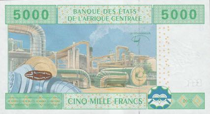 - Billet 5000 Francs CFA Afrique Centrale XAF verso