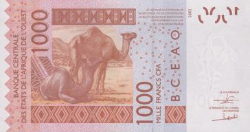- Billet 1000 Francs CFA Afrique Ouest XOF 2018 verso