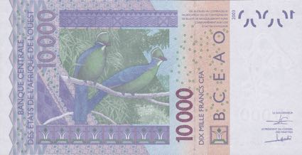 - Billet 10000 Francs CFA Afrique Ouest XOF 2018 verso