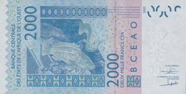 - Billet 2000 Francs CFA Afrique Ouest XOF 2018 verso