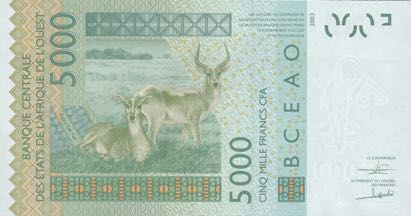 Le Franc CFA d’afrique de l’ouest est une monnaie commune hérité pendant la colonisation, est la devise officielle des huit états membres de l’Union économique et monétaire ouest africain (UEMOA): Bénin, Burkina, Côte d’Ivoire, Guinée-Bissau, Mali, Niger, Sénégal, Togo.