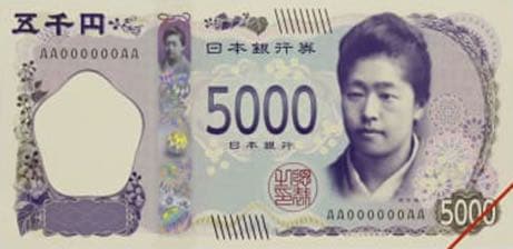 Sur celui de 5 000 yens nous trouverons Tsuda Umeko, fondateur de l’Université Tsuda Juku et première femme japonaise à étudier aux États-Unis.