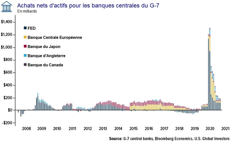 Les achats nets d’actifs des banques centrales du G-7 étaient supérieurs à 1,3 milliards de dollars en avril.