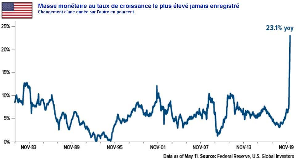 La masse monétaire américaine M2 au taux de croissance le plus élevé jamais enregistré