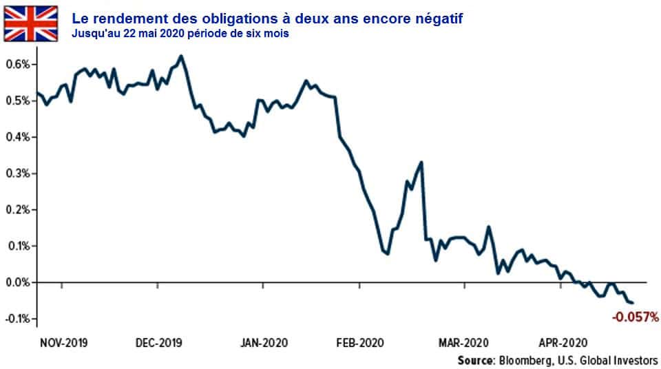 Le rendement des obligations du Royaume-Uni à deux ans chute encore dans un territoire négatif