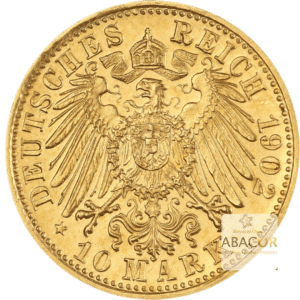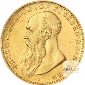 Pièce d’or 10 Mark Or Georg II. Abacor, comptoirs experts en numismatique depuis près de 30 ans, vous accompagnent dans l’achat de pièces d’or, alliant investissement sûr et passion pour l’histoire. Cette pièce d’or faisait partie du système monétaire de l’Empire allemand avant la Première Guerre mondiale. Les pièces de 10 Mark en or étaient utilisées comme moyen de paiement, mais elles servaient également de réserves de valeur. Aujourd’hui, elles sont recherchées par les collectionneurs et les investisseurs en raison de leur rareté et de leur teneur en or. Son attrait repose sur son histoire, son design soigné et son association avec un duché germanique relativement méconnu, ajoutant une dimension historique et patrimoniale à cette monnaie.