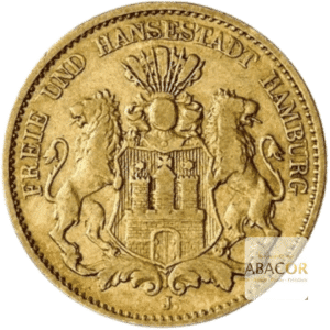 Informations sur la 10 Mark Or Hambourg. Les Comptoirs de l’Or Abacor s’efforcent de démystifier le domaine pointu de la numismatique pour le rendre accessible à tous. Ainsi, c’est la raison pour laquelle leurs numismates ont pris le temps d’inclure des informations détaillées dans les fiches descriptives de chaque pièce d’Or ou d’Argent. De plus, cette démarche pourra vous permettre de faire des choix éclairés à l’occasion d’achat d’or ou de vente d’or.