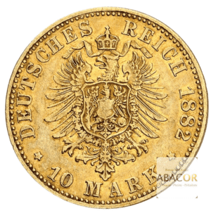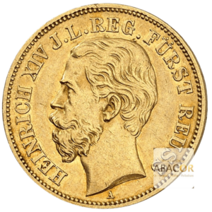 Pièce d’or 10 Mark Or Heinrich XIV. Abacor, comptoirs experts en numismatique depuis près de 30 ans, vous accompagnent dans l’achat de pièces d’or, alliant investissement sûr et passion pour l’histoire. La pièce 10 Mark Or Heinrich XIV 1882 est une monnaie en or émise sous le règne du Prince Heinrich XIV de Reuss-Gera, qui dirigeait la branche Reuss (Reuss branche cadette, en allemand : Reuß jüngere Linie). Cette pièce faisait partie du système monétaire impérial allemand instauré après l’unification du pays sous l’Empire allemand en 1871.