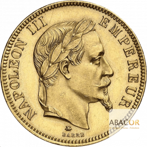 Informations sur la 100 Francs Or Napoléon III Tête Laurée. Les Comptoirs de l’Or Abacor s’efforcent de démystifier le domaine pointu de la numismatique pour le rendre accessible à tous. Ainsi, c’est la raison pour laquelle leurs numismates ont pris le temps d’inclure des informations détaillées dans les fiches descriptives de chaque pièce d’Or ou d’Argent. De plus, cette démarche pourra vous permettre de faire des choix éclairés à l’occasion d’achat d’or ou de vente d’or.