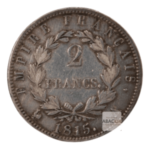 | Métal : Argent – Silver | Desc. pile : « 2 FRANCS » entourée d’une couronne de laurier et la date de frappe 1815 |