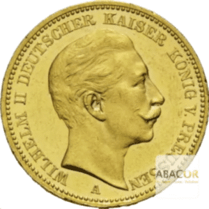 Pièce d’or 20 Mark Or Wilhelm II. Abacor, comptoirs experts en numismatique depuis près de 30 ans, vous accompagnent dans l’achat de pièces d’or, alliant investissement sûr et passion pour l’histoire. La pièce d’or de 20 Mark Or Wilhelm II à l’effigie de Guillaume II a été frappée entre 1888 et 1913 sous le règne du dernier empereur allemand et roi de Prusse, Guillaume II. Ces pièces témoignent de la puissance économique et politique de l’Empire allemand à la fin du XIXᵉ et au début du XXᵉ siècle.