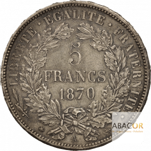 La pièce de 5 Francs Cérès se distingue par certaines particularités, notamment celles frappées en 1870 à Bordeaux, où des symboles tels que l’ancre ou l’étoile peuvent apparaître.