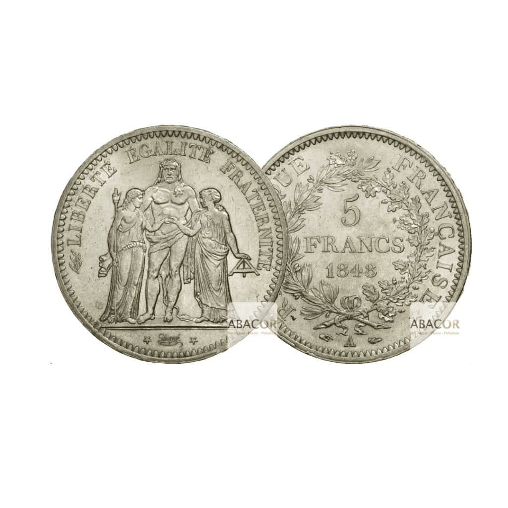 5 Francs Hercule 1848 & 1849. Vous avez des pièces d’argent à vendre ? Bénéficiez d’une évaluation de vos Pièces d’Argent auprès de nos experts numismates. De plus, si vous souhaitez effectuer un Achat de Pièces d’Argent, les experts Abacor vous font bénéficier gratuitement de conseils en investissement selon votre profil d’investisseur et ce, toute l’année.