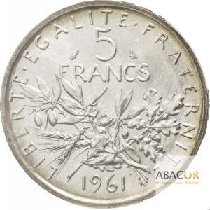 Pièce en Argent de 5 Francs Semeuse 1959 à 1969 – Vème République. Vous avez des pièces d’argent à vendre ? Bénéficiez d’une évaluation de vos Pièces d’Argent auprès de nos experts numismates. De plus, si vous souhaitez effectuer un Achat de Pièces d’Argent, les experts Abacor vous font bénéficier gratuitement de conseils en investissement selon votre profil d’investisseur et ce, toute l’année.