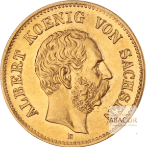 Pièce d’or 5 Mark Or Albert. Abacor, comptoirs experts en numismatique depuis près de 30 ans, vous accompagnent dans l’achat de pièces d’or, alliant investissement sûr et passion pour l’histoire. La pièce d’or de 5 Mark Or Albert, a été frappée entre 1877, sous l’Empire Allemand pour le Royaume de Saxe. En effet, cette pièce d’or Elle rend hommage à Albert de Saxe, qui était roi de Saxe.
