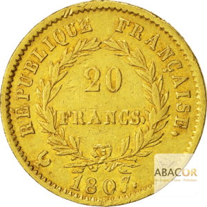 Pièce d’or 20 Francs Or Napoléon 1er Tête Nue 1806 et 1807. Abacor, comptoirs experts en numismatique depuis près de 30 ans, vous accompagnent dans l’achat de pièces d’or, alliant investissement sûr et passion pour l’histoire. Les pièces de 20 Francs Or Napoléon 1er Tête Nue 1806 et 1807 incarnent une période charnière de l’histoire française, où Napoléon consolidait son pouvoir et son système monétaire. Ces pièces, rares et prisées par les collectionneurs, reflètent l’excellence des ateliers monétaires de l’époque et le souci d’unification économique voulu par l’empereur. Représentant un symbole fort de l’Empire, elles combinent une valeur historique, patrimoniale et financière, en faisant des trésors incontournables pour les passionnés de numismatique.