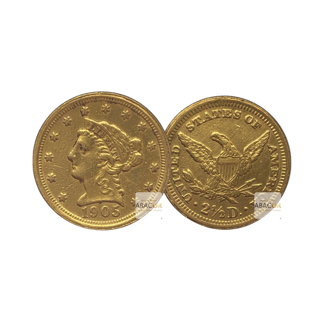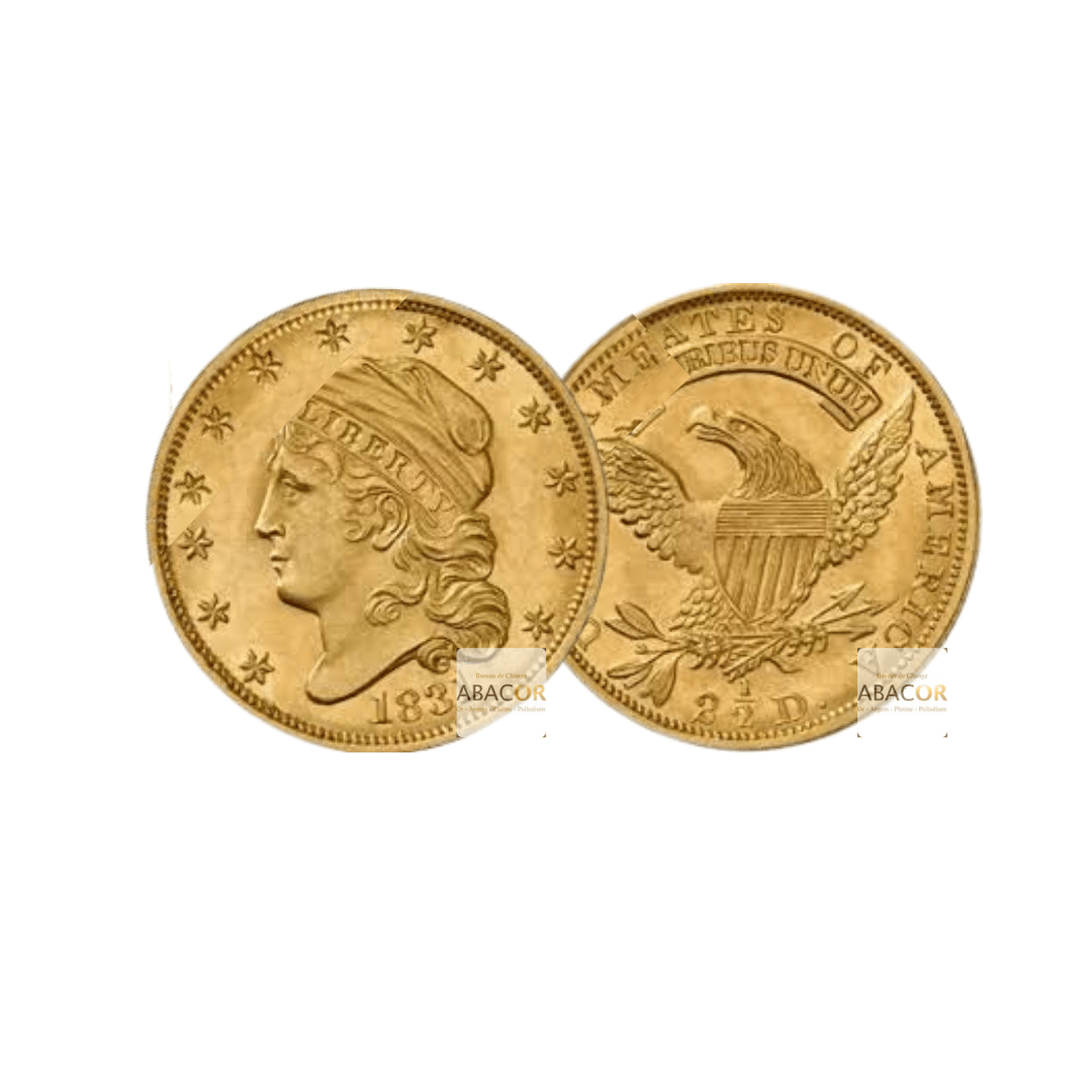 Pièces d’Or États-Unis. Les 2,5 dollars or, surnommés Quarter Eagle, ont été frappés par les États-Unis entre 1796 et 1929. Ces petites pièces en or, pesant 4,18 ou 4,37 grammes, se déclinent en plusieurs designs, dont le célèbre Liberty Head et l’innovant Indian Head avec un motif en creux. Symboles de l’histoire monétaire américaine, elles sont aujourd’hui prisées par les collectionneurs et les investisseurs.