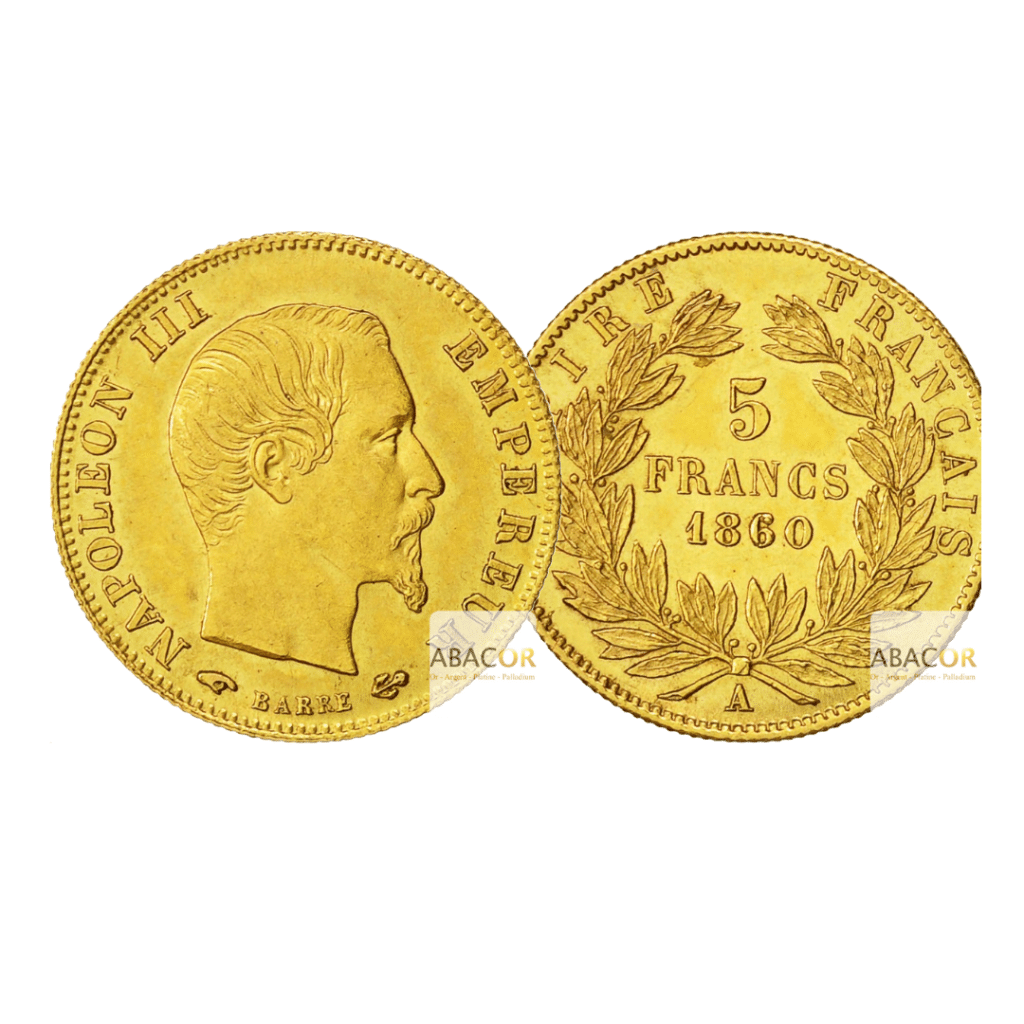 Pièces d’Or FRANCE. Sous Napoléon III, la première Pièce de 5 Francs Or a vu le jour en 1854, et on recense trois variantes distinctes de ces pièces françaises.