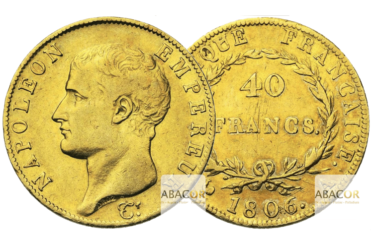 40 Francs Or Napoléon 1er![]() | Date de frappe : 1806 à 1807 Nombre de frappe : 291.584 |