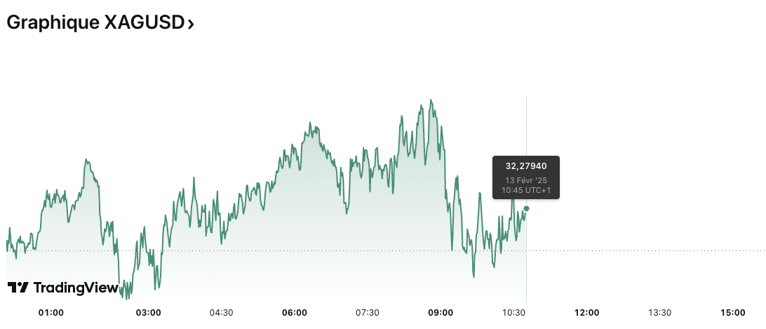 L’argent (XAG/USD) a récemment connu une forte dynamique haussière, en grande partie grâce à l’affaiblissement du dollar et à la baisse des rendements obligataires. Ce mouvement a propulsé son cours jusqu’à 32,39 $, avant qu’il ne se stabilise à 32,32 $.