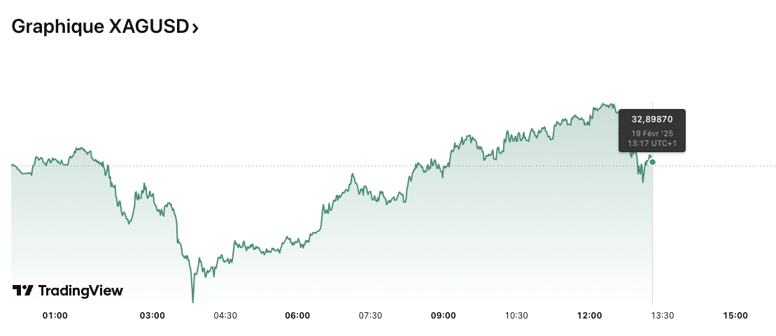 Quelles sont les prévision du cours de l’argent aujourd’hui ? Aujourd’hui, le cours de l’argent (XAG/USD) s’élève à 32,89 dollars l’once.