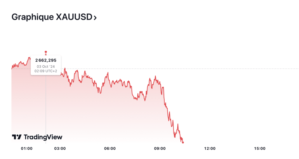 En ce début d’octobre, l’indice du dollar américain a ainsi atteint son plus haut niveau depuis trois semaines. Cela marque une performance qui s’explique par la publication de chiffres économiques supérieurs aux attentes. Notamment, l’une des données clés ayant contribué à cette dynamique est l’augmentation des salaires dans le secteur privé américain en septembre, soulignant la bonne santé persistante du marché du travail aux États-Unis. Ainsi, cette situation a mis sous pression le prix de l’or. Celui-ci a évolué dans une fourchette étroite, oscillant autour de 2 653 dollars l’once, après avoir brièvement atteint un plus bas intrajournalier de 2 651,93 dollars.