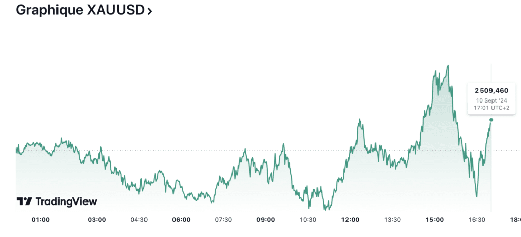 Prévision du cours de l’or aujourd’hui 10/09. Malgré un maintien solide du cours de l’or au-dessus du support de 2 500 dollars l’once, plusieurs facteurs limitent les gains des métaux précieux. Notamment, la vigueur du dollar américain actuelle. Cette semaine, les investisseurs attendent avec impatience la publication de rapports clés sur l’inflation américaine. Ces données devraient avoir un impact considérable sur l’orientation future du prix de l’or. Dès lors, ces données auront un impact essentiel concernant les futures décisions de la Réserve fédérale concernant les taux d’intérêt.