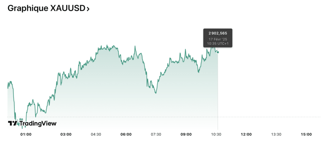Prévision du cours de l’or 17/02. L’or en hausse. Le cours de l’or poursuit sa progression, porté par un affaiblissement du dollar et des anticipations de baisse des taux de la Fed. Les incertitudes économiques, les tensions commerciales et les pressions inflationnistes renforcent l’attrait du métal jaune comme valeur refuge. Face à une volatilité persistante, les investisseurs restent attentifs aux prochains indicateurs économiques et aux décisions des banques centrales.
