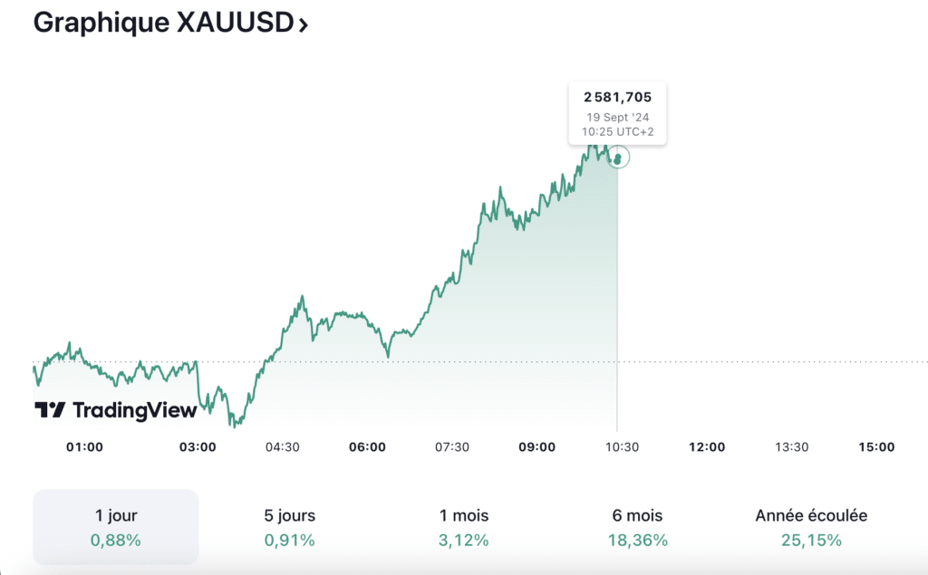 De fait, dans ce contexte d’incertitude économique et géopolitique, l’or continue d’être perçu comme un placement sûr. En effet, en période de taux d’intérêt bas et de turbulences sur les marchés financiers, les lingots d’or sont souvent privilégiés par les investisseurs en quête de stabilité. Ainsi, la réduction des taux d’intérêt décidée par la Fed hier, renforce encore cette dynamique. Ceci, en rendant les actifs non rémunérateurs comme l’or plus attrayants par rapport aux obligations.