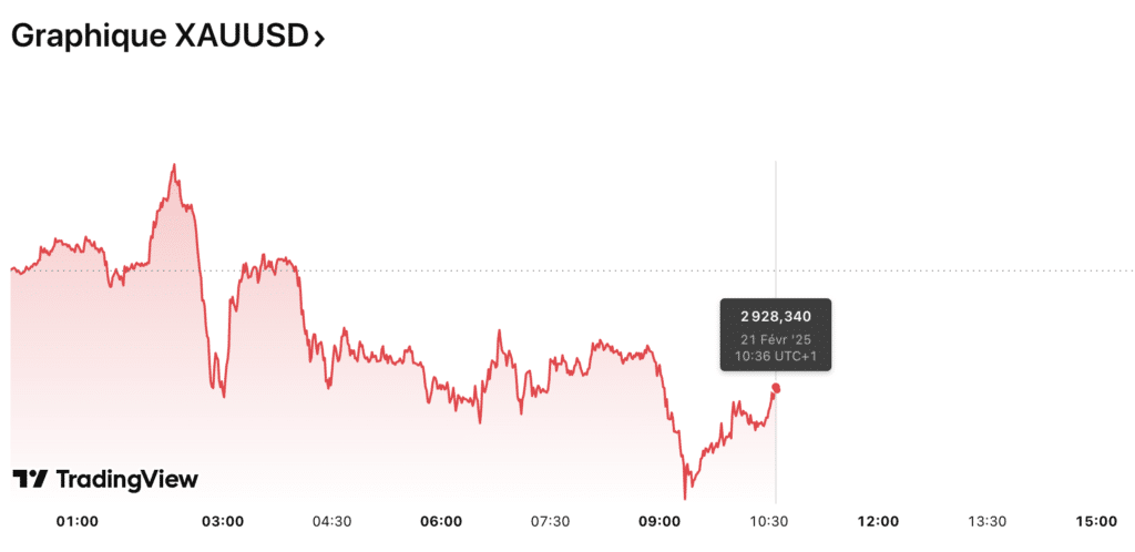 Prévision du cours de l’or 21/02. L’or en route vers 3 000 $. L’or traverse une phase de correction après avoir atteint un sommet historique, tombant à 2 927 $ sous l’effet de prises de bénéfices. Malgré ce repli, la tendance haussière reste solide, soutenue par un dollar affaibli, l’incertitude économique et les tensions commerciales. Les investisseurs surveillent désormais les décisions de la Réserve fédérale, qui pourraient être déterminantes pour la trajectoire du métal précieux.