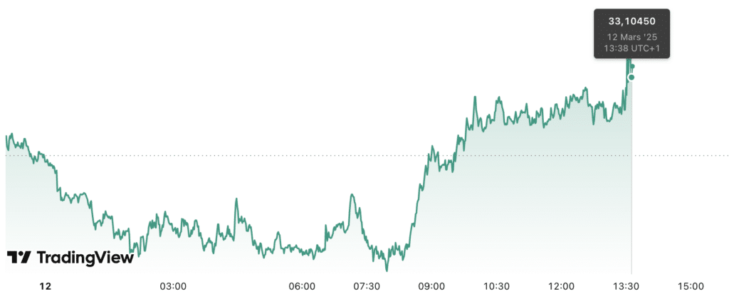 Prévision du cours de l’argent 12/03. Le cours de l’argent, mesuré en XAG/USD, a récemment atteint 33 $ lors des échanges européens d’aujourd’hui. Ce regain de dynamisme a marqué un pic notable, son plus haut niveau en plus de deux semaines. Mais qu’est-ce qui explique cette hausse soudaine et comment les différents facteurs économiques et géopolitiques influencent-ils le marché de l’argent aujourd’hui ?