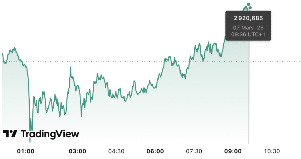 Prévision du cours de l’or aujourd’hui 07/03. Aujourd’hui, le cours de l’or (XAU/USD) est en hausse de 0,3 % et s’élève à 2 920,68 dollars l’once à 9h36 UTC+1. En outre, le prix du kilo d’or est estimé à 86 544,71 euros et le prix du gramme d’or 24 carats à 86,54 euros.