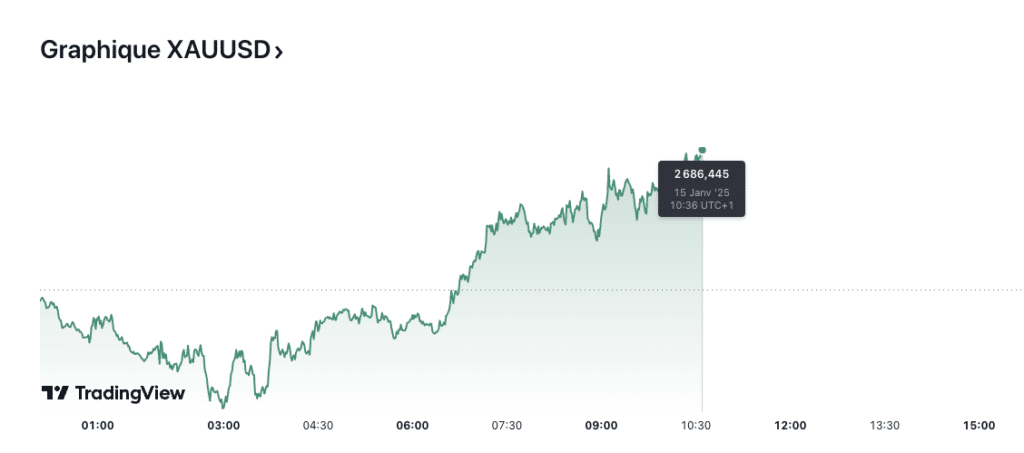 Le cours de l’or (XAU/USD) se stabilisent actuellement autour de 2 686 dollars l’once, avec un pic à 2 690 dollars. Ce contexte s’explique par des données récentes sur l’inflation américaine, qui ont été inférieures aux prévisions. Ces chiffres moins élevés que prévu ont apaisé les craintes d’un resserrement monétaire trop rapide de la part de la Réserve fédérale (Fed).