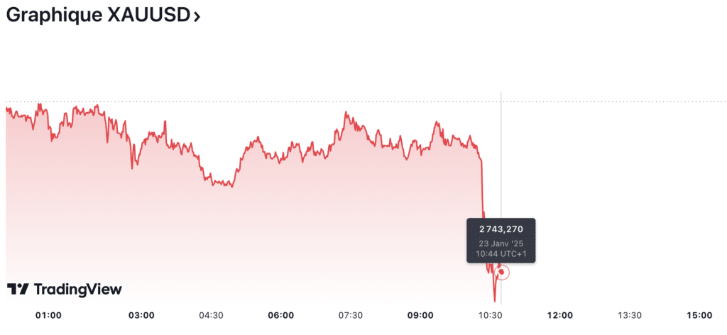 Le cours de l’or (XAU/USD) continue de subir une pression significative, s’échangeant actuellement autour de 2 752 $, après avoir touché un plus bas à 2 749 $. Cette récente baisse s’explique principalement par un dollar américain renforcé, soutenu par un rebond des rendements des obligations du Trésor américain. Lorsque les rendements obligataires augmentent, ils offrent des retours financiers plus attractifs que les valeurs refuges comme l’or, réduisant ainsi l’intérêt des investisseurs pour le métal précieux.