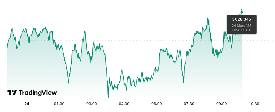 Prévision du cours de l’or aujourd’hui 24/03. L’or reste au-dessus des 3 025 $, malgré trois jours de baisse, soutenu par les tensions géopolitiques et les anticipations des décisions de la Fed. En effet, les prévisions de la Fed, qui évoquent deux baisses de taux d’ici la fin de 2025, ont renforcé l’attrait de l’or.