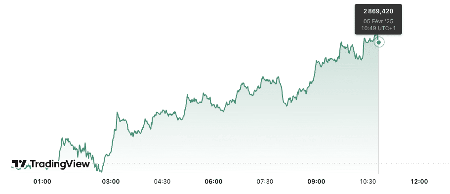 Le cours de l’or a franchi un nouveau record, atteignant 2 860 dollars l’once, porté par plusieurs facteurs conjoncturels. En premier lieu, le ralentissement du marché de l’emploi aux États-Unis a alimenté la demande pour des actifs refuges. En effet, le rapport JOLTS a révélé une baisse considérable des offres d’emploi. Celles-ci passant de 8,09 millions en novembre à 7,6 millions en décembre. Ce constat renforce l’idée que le marché du travail s’affaiblit. Augmentant ainsi la probabilité d’un assouplissement monétaire de la part de la Réserve fédérale (Fed). Cela soutient, en conséquence, l’attrait de l’or.