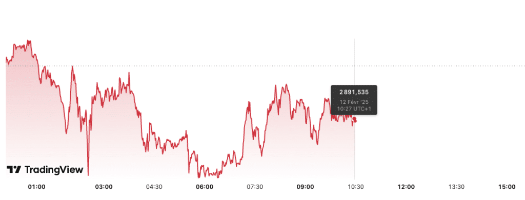 Mais cette baisse ne s’est pas arrêtée là. Au contraire, le marché a continué à s’affaiblir progressivement au cours des neuf heures suivantes. Il a atteint un creux de 2 907 dollars. Une modeste reprise en fin de séance a permis de limiter les pertes. Cependant, la dynamique baissière observée durant la journée a laissé les analystes perplexes quant à la suite des événements.