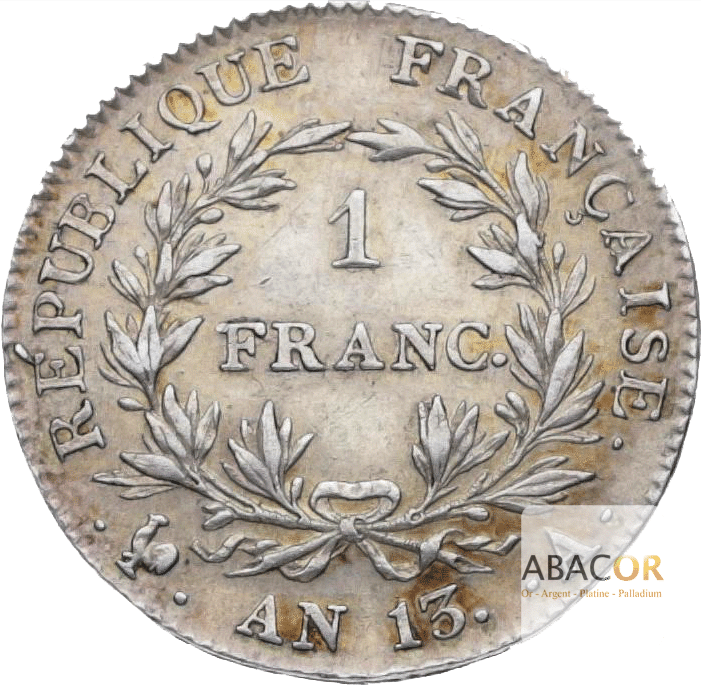de la pièce de 1 Franc Argent Napoléon Empereur An 12, An 13 et An 14