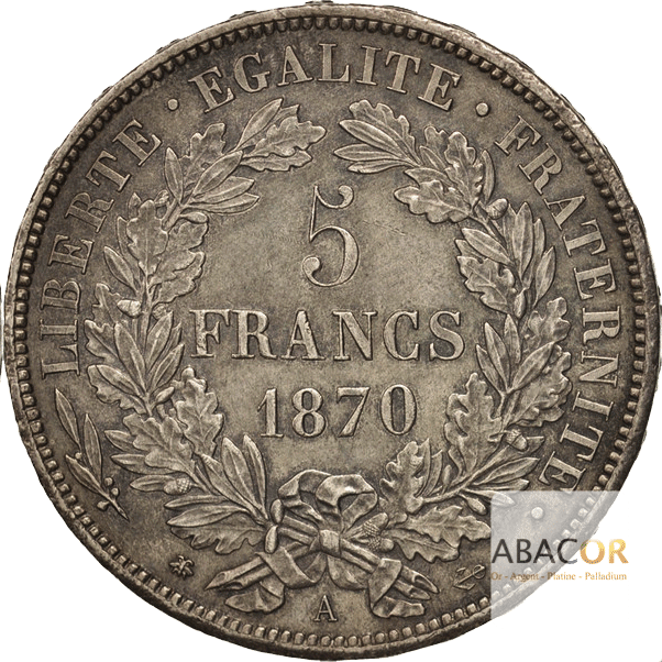 de la pièce de 5 Francs Argent Cérès Avec Légende 1870