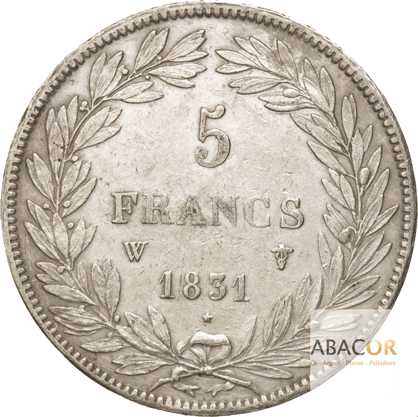 de la pièce de 5 Francs Argent Louis-Philippe Ier Tête Nue