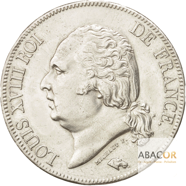de la pièce de 5 Francs Argent Louis XVIII Buste Nu