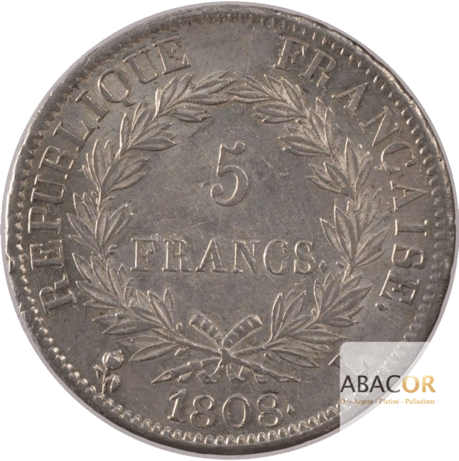 de la pièce de 5 Francs Argent Napoléon Ier Lauré Revers République