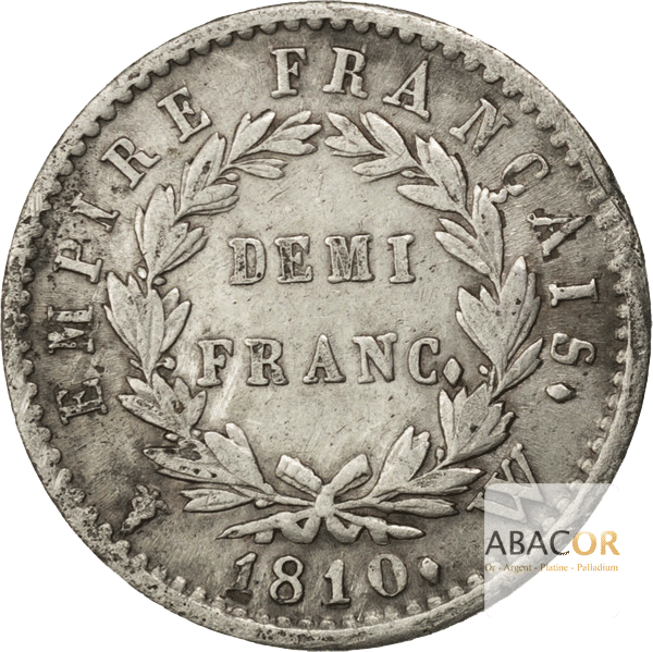 de la pièce de Demi Franc Argent Napoléon Ier Tête Laurée Revers Empire
