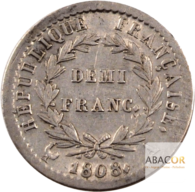 de la pièce de Demi Franc Argent Napoléon Ier Tête Laurée Revers République