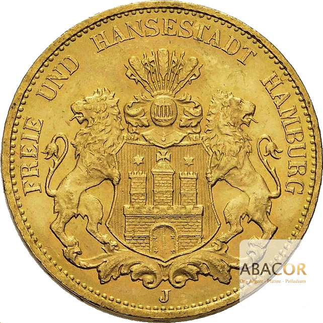 L’empire allemand est alors composé de plusieurs royaumes, grands duchés, duchés, principautés et villes libres. Ainsi, chacun des membres était libre de frapper son 20 Reich Mark à son effigie. Parmi les plus répandues nous trouvons celles frappées par Prusse, la Bavière, le Wurtemberg, la Saxe, Baden ou encore la ville de Hambourg.