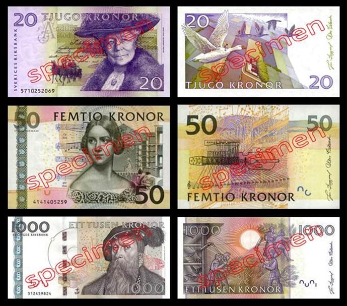 La Banque Centrale de Suède retire de la circulation les coupures ci-après au 01 juin 2016 :